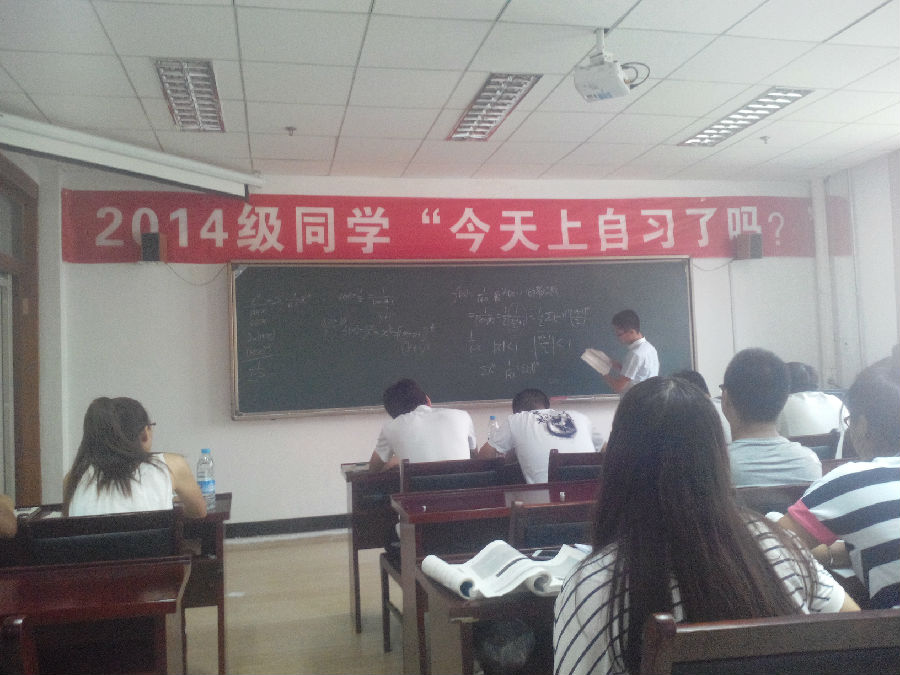 步入教室,“2014级同学,今天你上自习了么?”醒目的标语映入眼帘。你问我答、奋笔疾书、认真思考、互帮互助的一幕幕场景尽在眼底。这正是球盟会为加强2014级新生班级学风建设,提升后进生学习成绩的一项新举措——开设数分、高代学习提高班。学院用爱温暖学生,通过队伍搭建、制度设计、文化熏陶,努力营造良好的班风学风。利用短学期空隙,组织三个专业学习成绩差的学生上自习,学习成绩好的同学作为“小老师”授课。