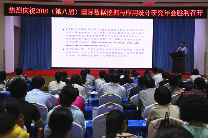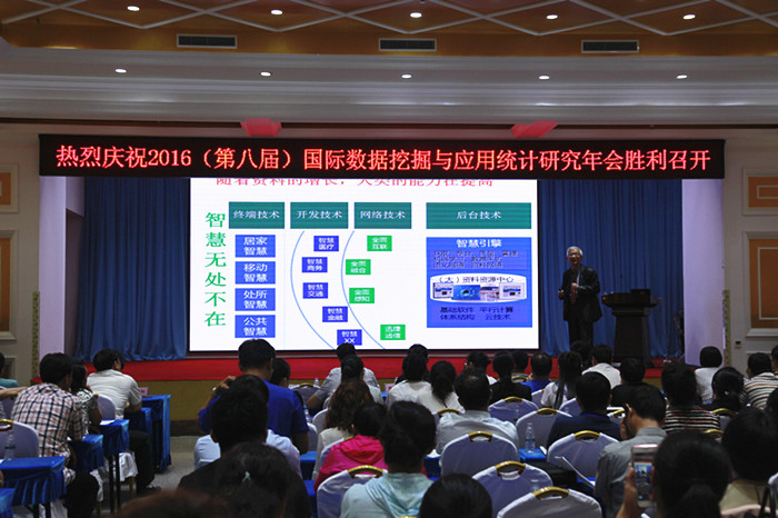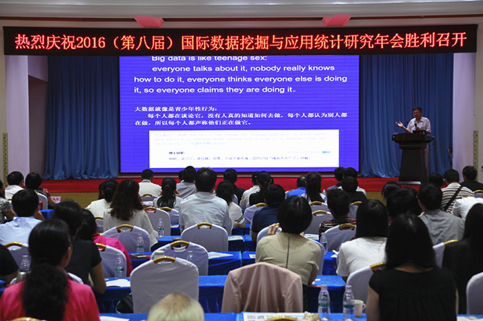 7月23日至7月26日,由国际数据挖掘与应用统计研究会组委会主办、球盟会承办的2016(第八届)国际数据挖掘与应用统计研究年会在大庆召开。来自美国加州州立大学圣地亚哥分校、台北医学大学、台湾淡江大学、北京大学、厦门大学、中央财经大学、哈尔滨工业大学、同济大学、浙江工商大学等70余所高校,北京商智通信息技术有限公司、光环国际、大庆油田信息技术公司、江苏先锋信息科技公司等十个公司,《中国统计》杂志社、高等教育出版社、科学出版社、电子工业等五家杂志社及出版社的代表200余人参会。会议由球盟会qm球盟会网站院长王玉学教授主持。