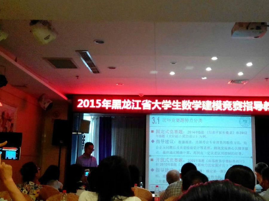 并且,“数学建模教师团队”还积极向外宣传数学建模创新基地的工作,传授经验,共享收获。数学建模创新基地的“数学建模教师团队”在黑龙江赛区已经具有较高的声誉,一些高校慕名而来学习竞赛培训经验,黑龙江八一农垦大学和大庆师范学院还派老师和学生到基地进行培训。在数学建模创新基地的帮助和影响下,这些学校在数学建模竞赛中已经取得了长足的进步。